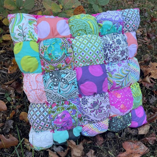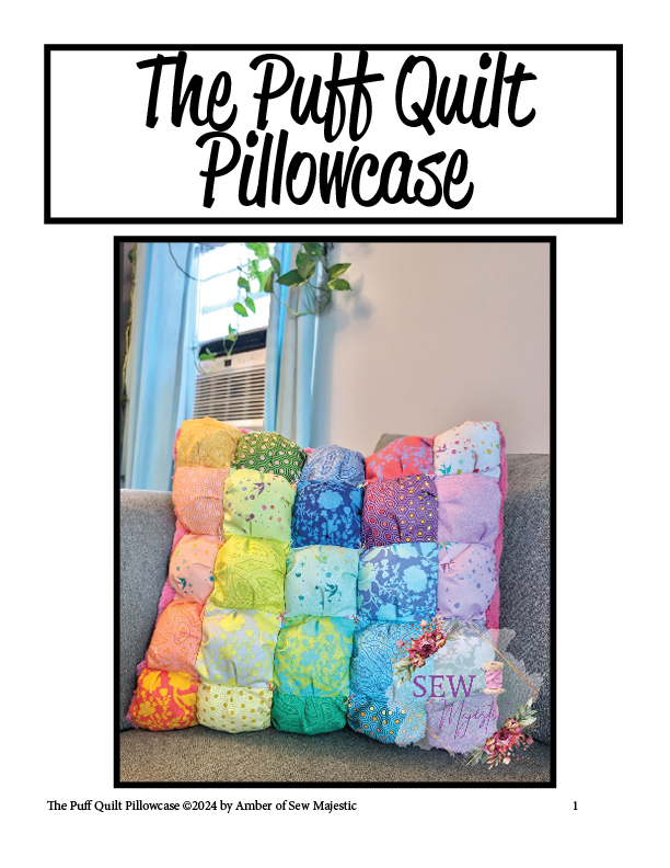 The puff quilt pillowcase pattern is my newest pattern. I believe it is perfect for beginners and is charm pack friendly! The pattern will guide you through making a puff quilt, envelope style pillowcase that measures approximately 18.5" inches square. You can even use the steps within the pattern to expand it to larger sizes to create quilts.